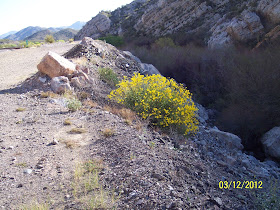 Today we drove over the scary Gate's Pass road through the Tucson Mountains to get to the Desert Museum's annual Wildflower Hike. There were 2 guides and 24 of us senior"ish" hikers who set out at 8:30 for a 3 hour "stroll" through the rocky, pebble strewn King's Canyon in the West Saguero National Park. We walked over dry river beds, scoured bedrock outcroppings and several tricky small rock walls. Their description of a few steep trails was not exactly accurate. The "road" back was a rocky rubble originally built by miners and the CCC. We did learn an incredible amount about desert plants and saw beautiful miniature blossoms.